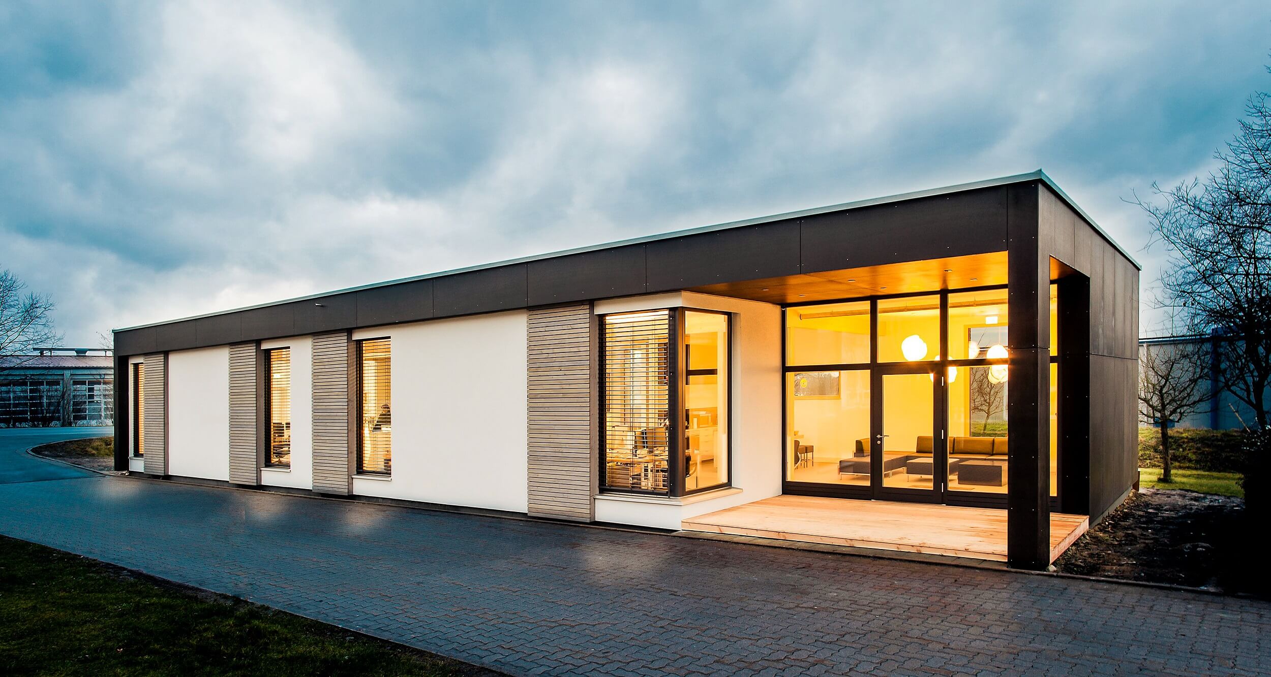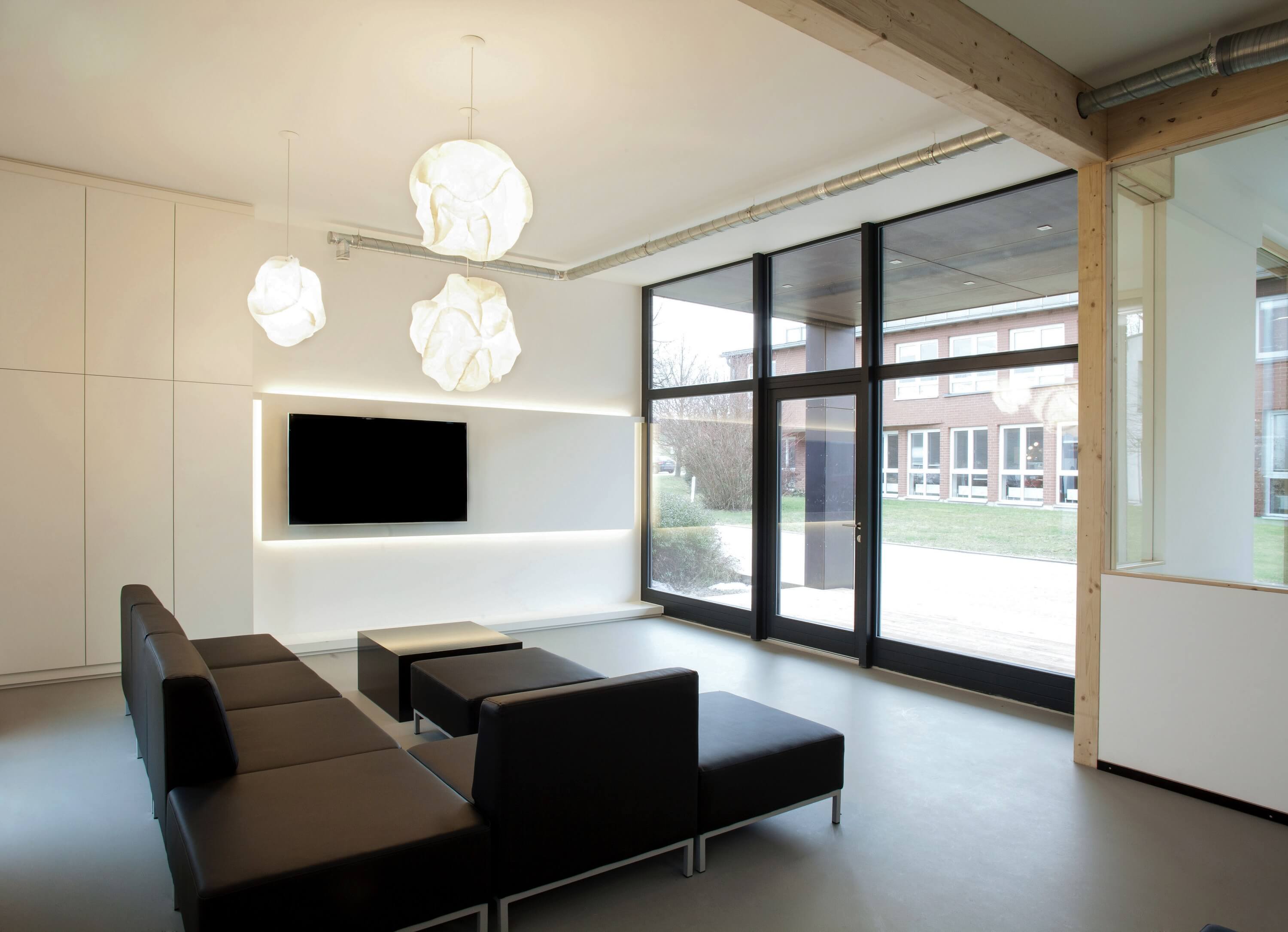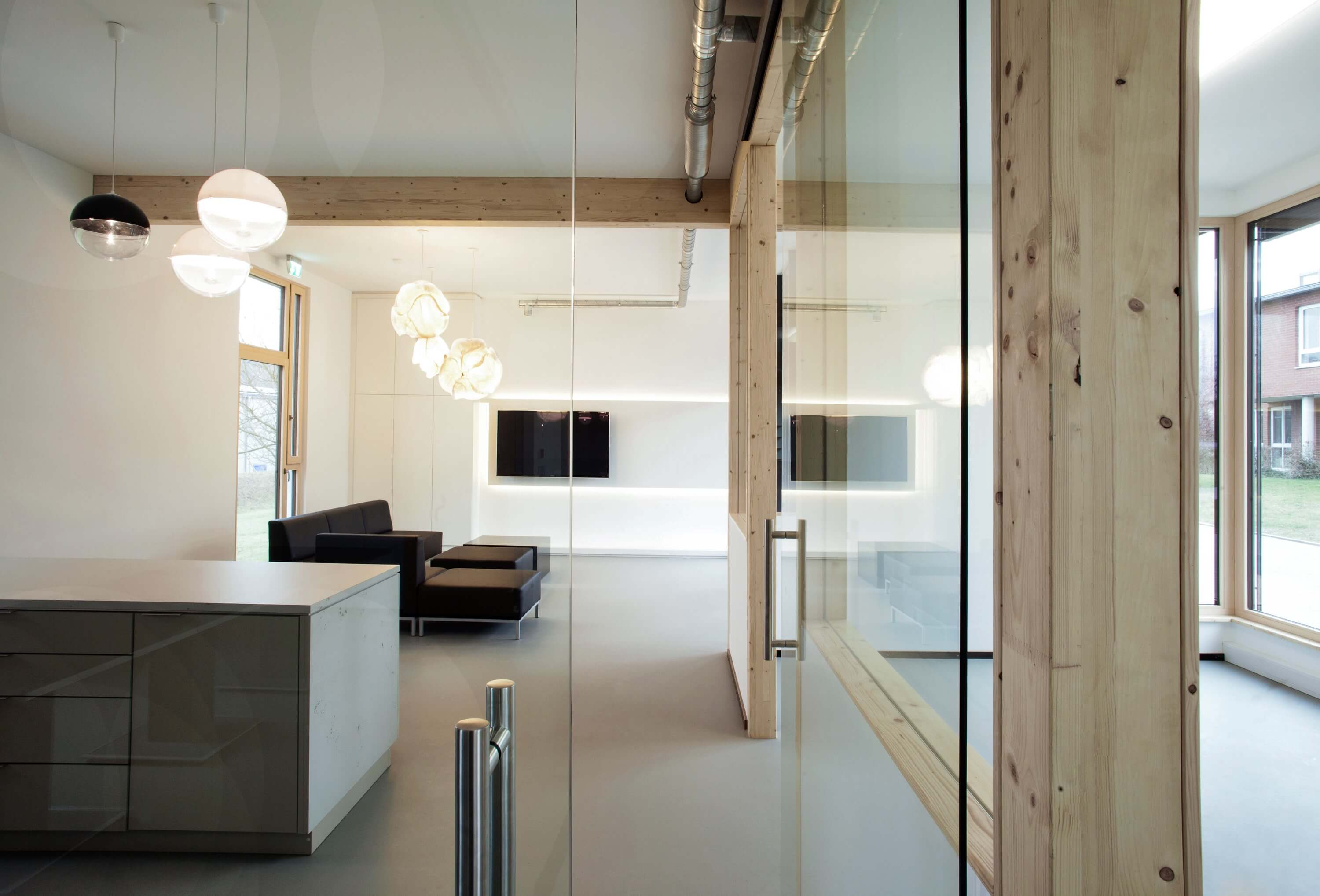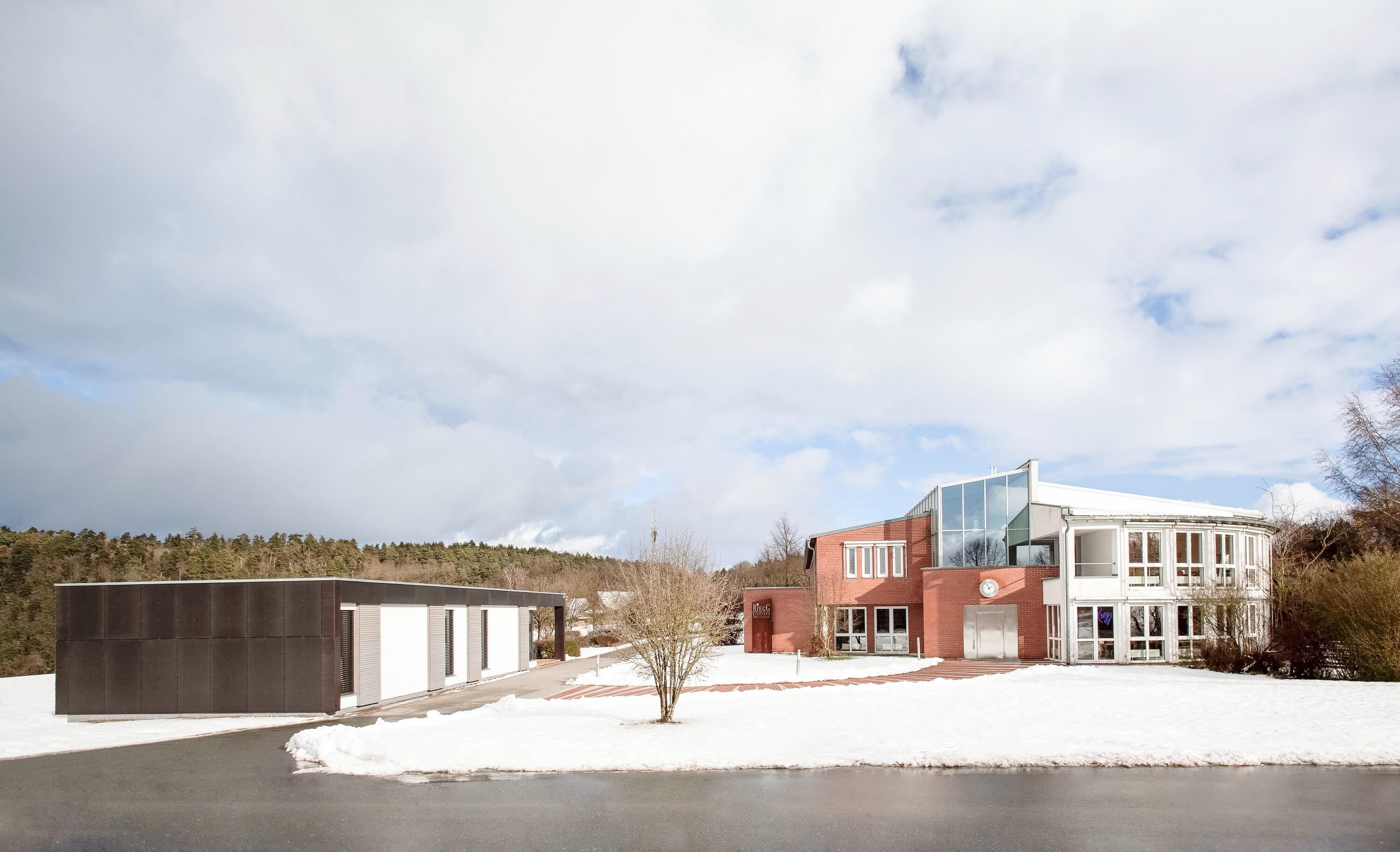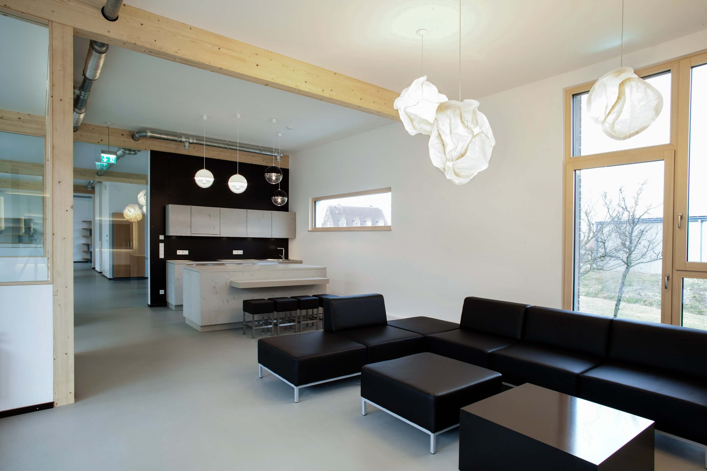 Der Entwurf des Gebäudes der Firma Riegg & Partner intercorp. GmbH in Neudrossenfeld zeugt von modernster Büroarchitektur. Dabei richtet er sich nach den Vorgaben und Arbeitsabläufen der Nutzer und trägt mit konsequenter Schlichtheit den hohen gestalterischen sowie energetischen Ansprüchen des Bauherren Rechnung. Die 2weiPlus Architekten in Bamberg entwarfen das Tragwerk der optimal gedämmten Holzkonstruktion so, dass es die Raumfolge der einzelnen Nutzungsbereiche gliedert. Als technische Ausstattung wurde eine bivalente Luft-Wasser-Wärmepumpe zum Heizen und Kühlen gewählt.