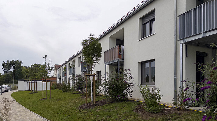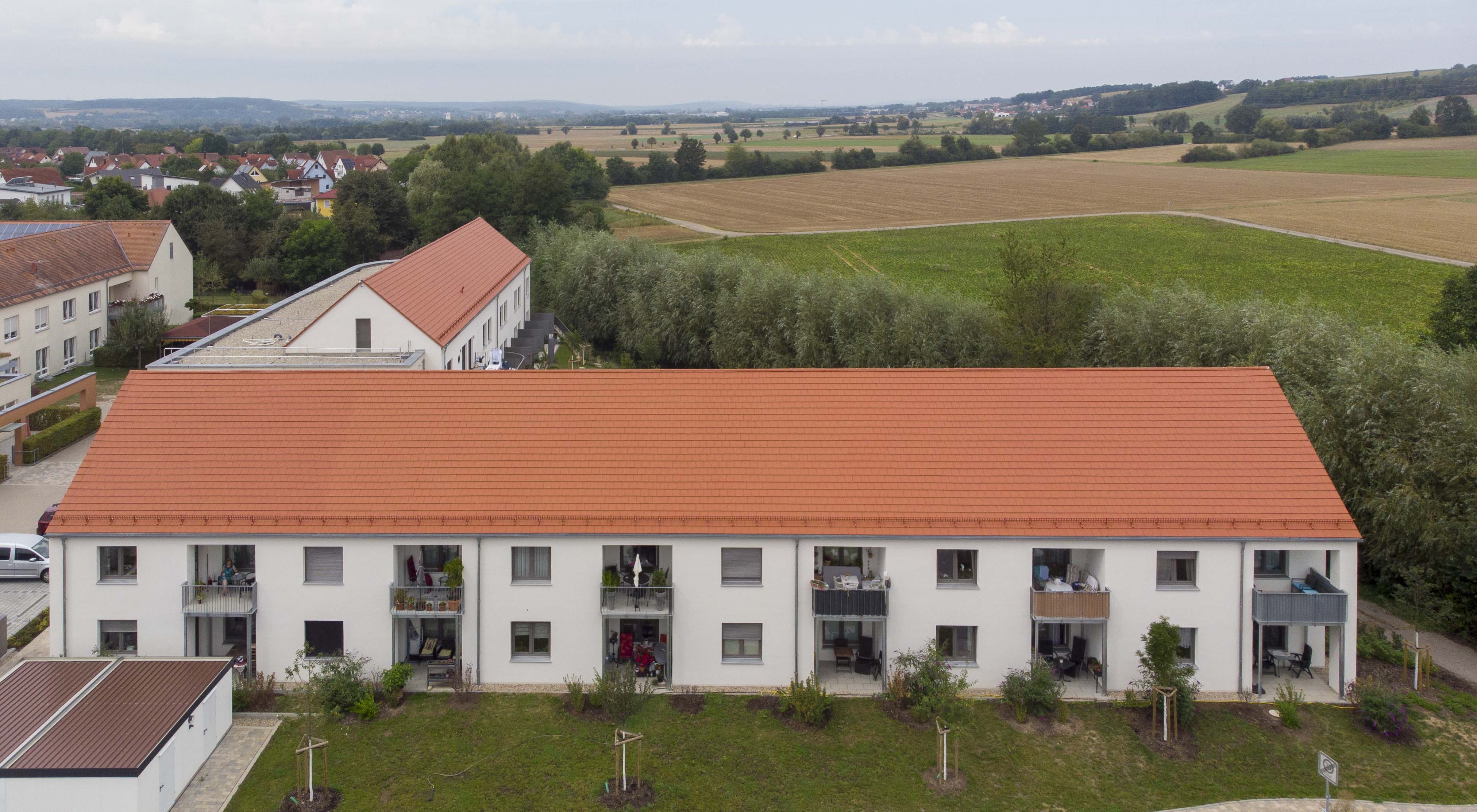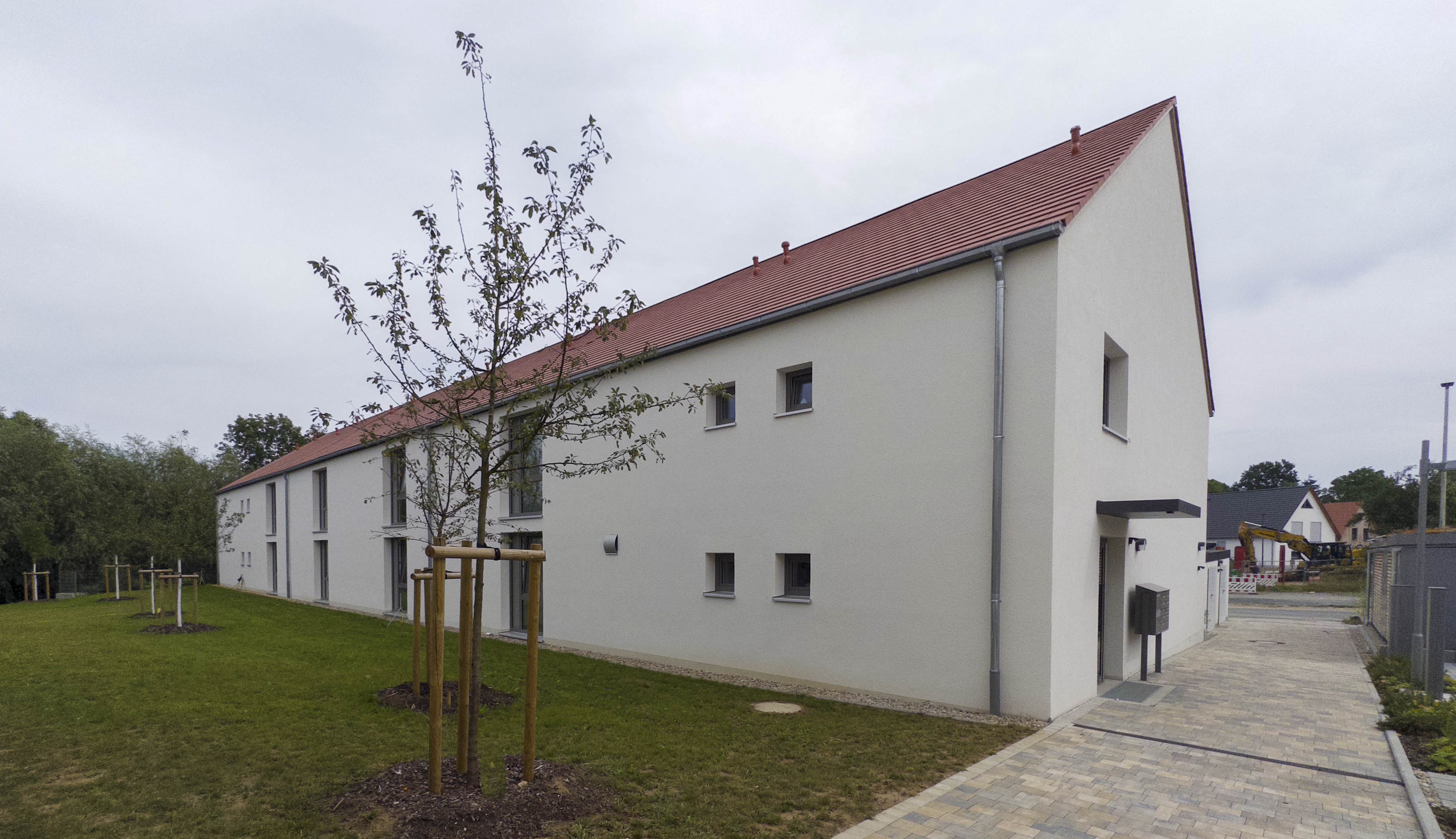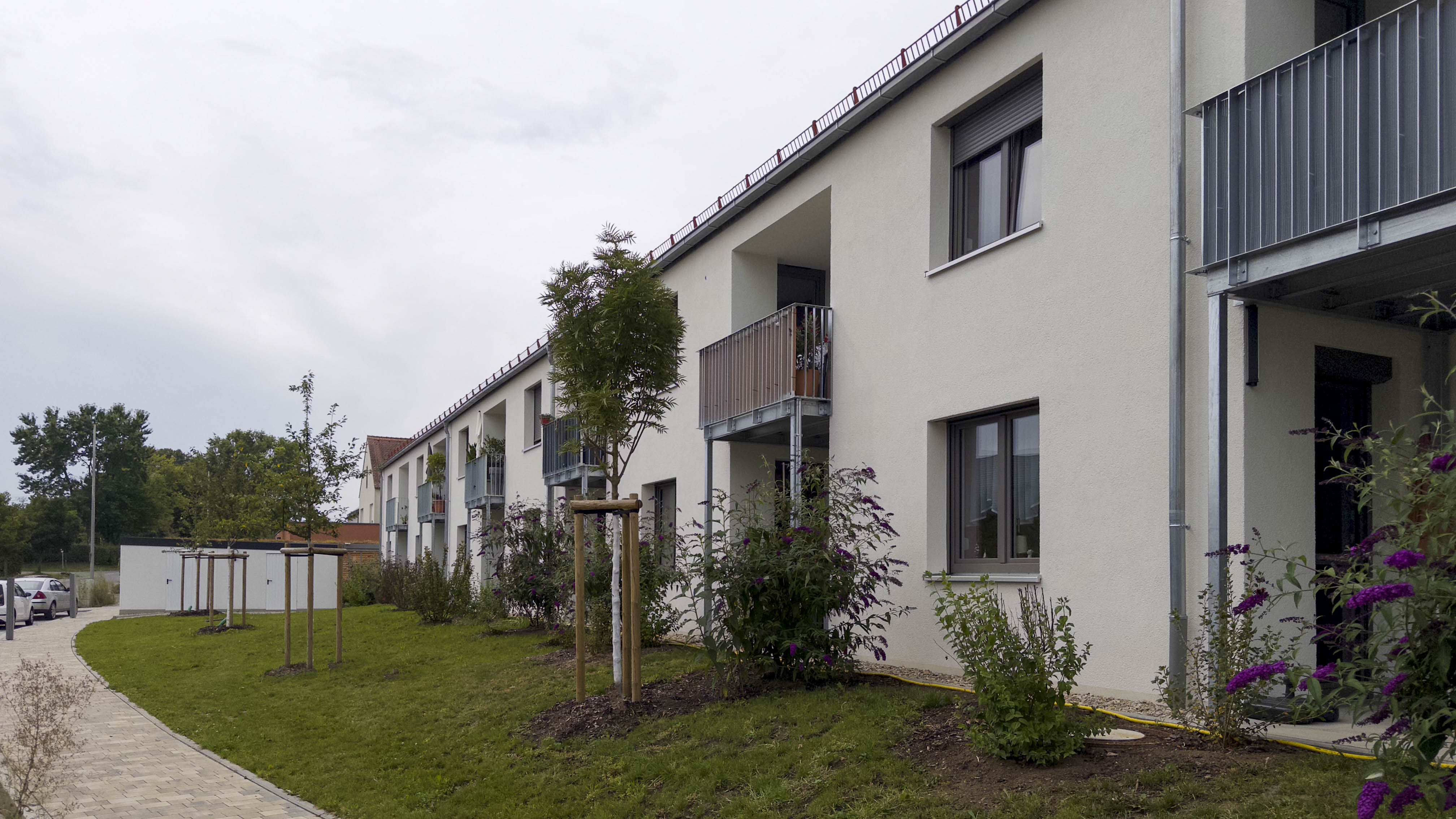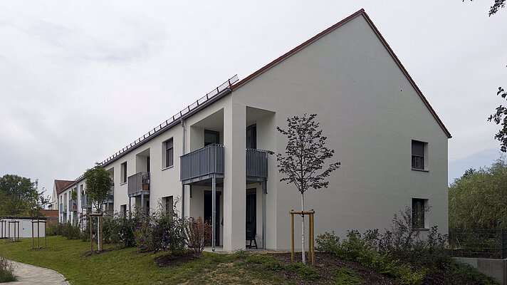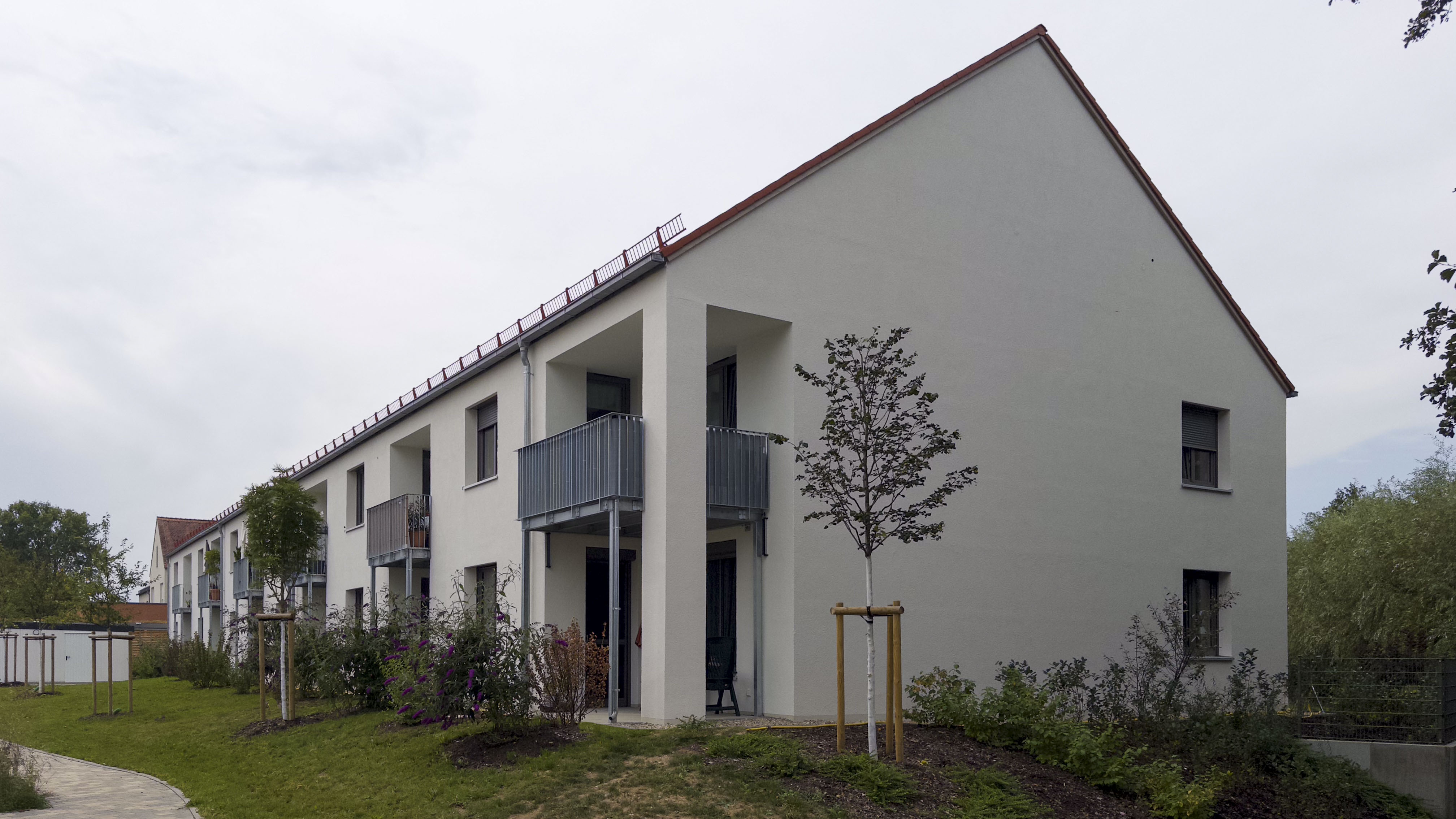 Mit insgesamt 12 Wohneinheiten (davon 6 geförderte Einheiten) wurde nach dem Entwurf der Joseph-Stiftung (LPH 1 - 4 HOAI) die Wohnanlage von 2wei Plus architekten (LPH 5 - 9) im KfW-40 - Standard umgesetzt. Das Gebäude wurde in Massivbauweise (KS-Wände mit WDVS, Bodenplatte und Decken in Stahlbeton) errichtet. Die Balkone wurden thermisch getrennt in Stahlbauweise vor der gedämmten Gebäudehülle positioniert. Die Wohneinheiten (Allraum mit Wohnen / Essen sowie Schlafzimmer und Bad) werden über gemeinsame Flure im EG und OG erschlossen. Die Barrierefreiheit für alle Wohnungen wird über einen Plattformlift erreicht. Alle Einheiten sind mit einer zentralen Abluft und hygrometrisch gesteuerten Zuluftelementen ausgestattet.